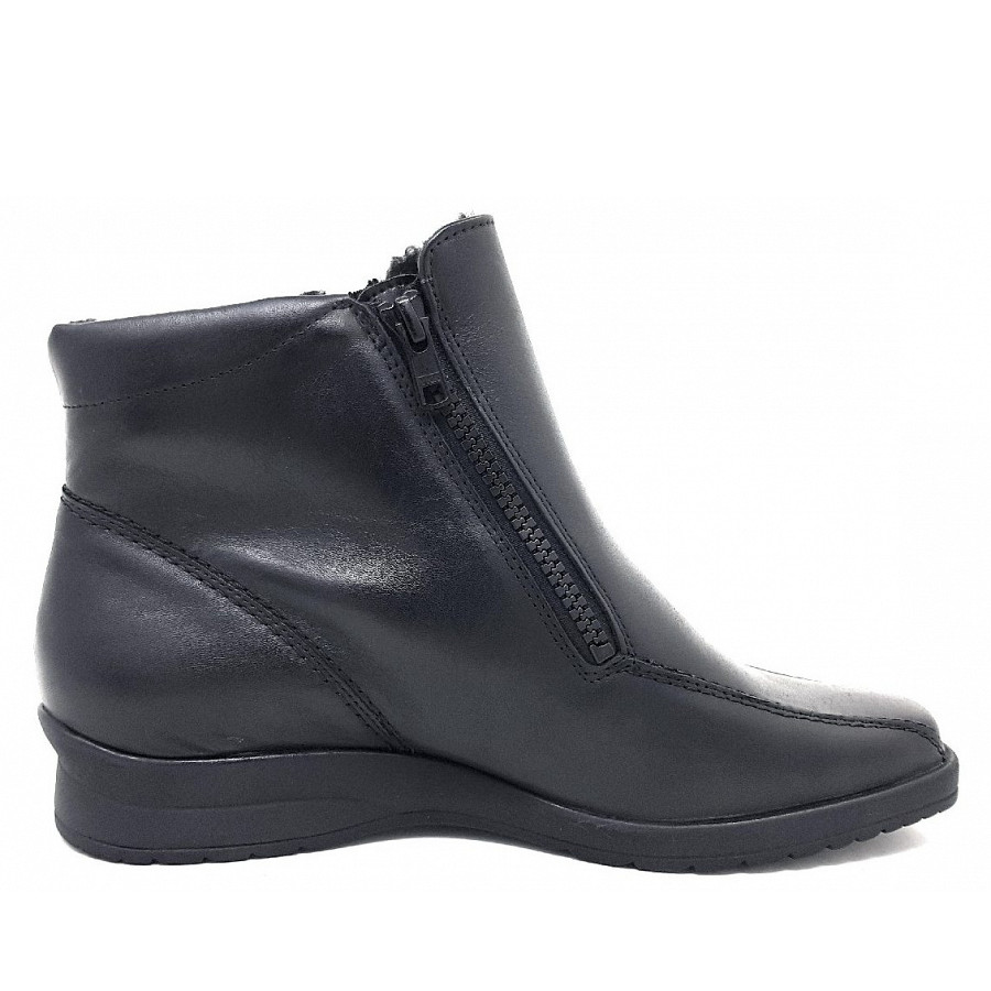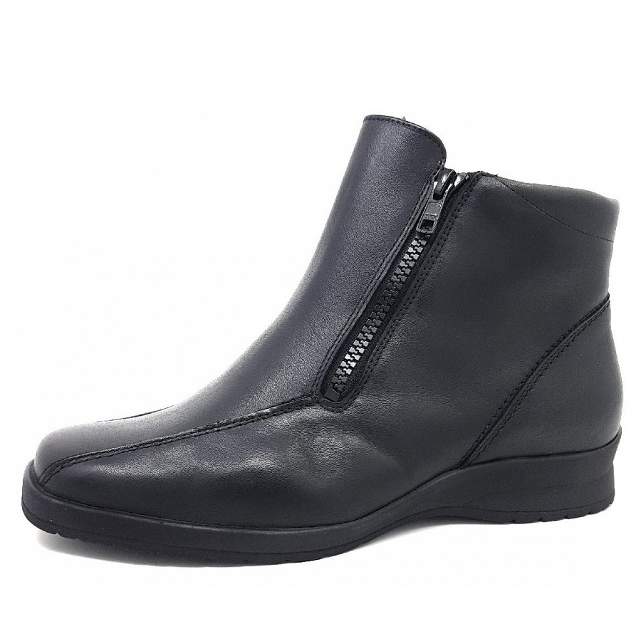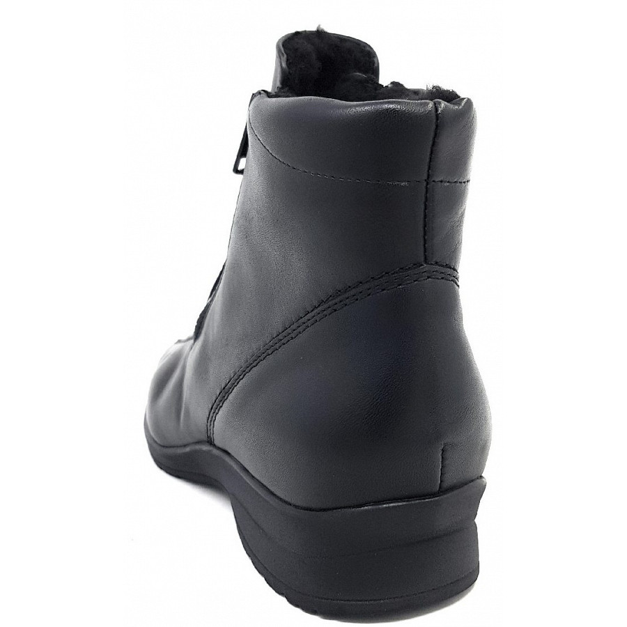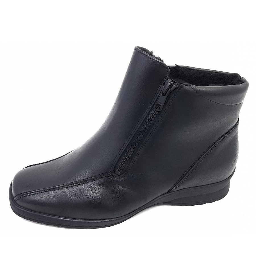 Eine Semler-Stiefelette für den breiten Fuß. Der Einstieg ist bequem durch einen Doppelreißverschluß. Das Webpelzfutter wärmt den Fuß. Auch geeignet für Einlagen.