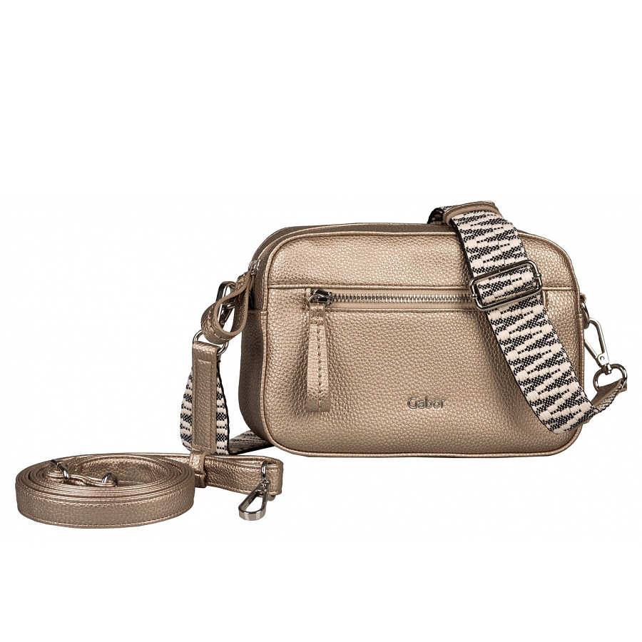 Das hochwertig gewebte Gurtband in Kombination mit der ansonsten minimalistisch gehaltenen Gabor SILENA. Metallreißverschlüsse, hochwertig verarbeitete Reißverschlusszieher und das filigrane Logo ergänzen den Look perfekt. Umhängetasche mit Reißverschlussöffnung, 1 Reißverschluss-Vorfach. Innen 1 Reißverschlussfach, 1 Smartphone-Fach. 1 abnehmbarer verstellbarer Schulterriemen aus Gewebeband, 1 abnehmbarer verstellbarer Schulterriemen aus Lederimitat.